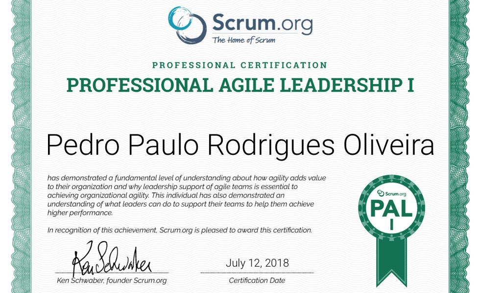 Recentemente a Scrum.org lançou mais uma certificação relacionada ao framework Scrum (e a agilidade) denominada Professional Agile Leadership I (PAL I). Esta certificação (e o treinamento relacionado) tem como objetivo principal testar o conhecimento do C-level e da gestão sênior acerca dos valores e princípios ágeis, bem como das regras contidas no framework Scrum.